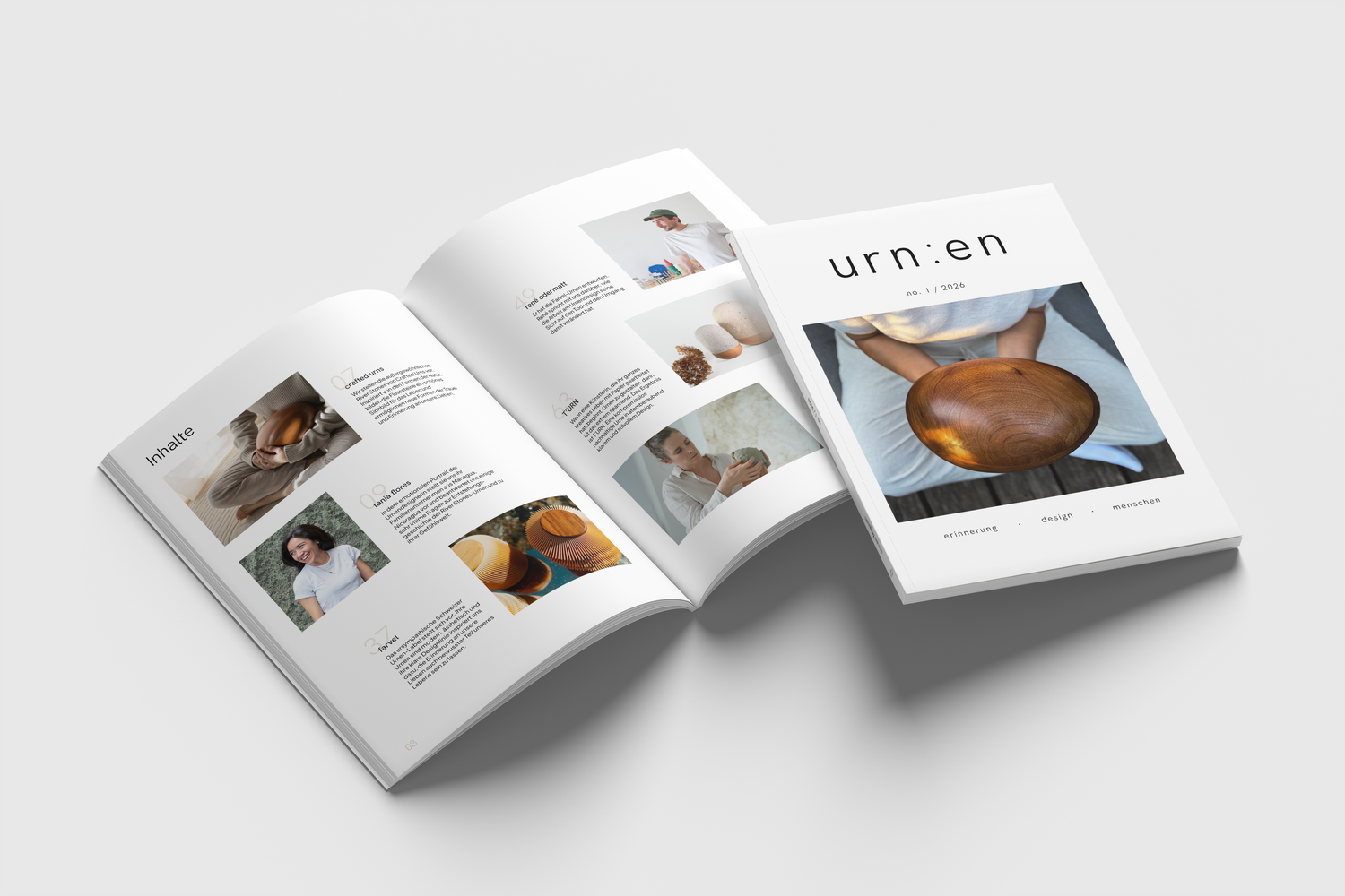 In unserem liebevoll gestalteten Magazin finden Sie unsere einzigartigen Urnen-Kollektionen in besonderem Licht. Wir stellen Ihnen in authentischen Portraits die Designer hinter den Urnen vor und erzählen über ihre Motive und Gefühle, die sie mit den Urnen verbinden. Lesen Sie das Magazin online oder bestellen Sie sich eine Printausgabe.