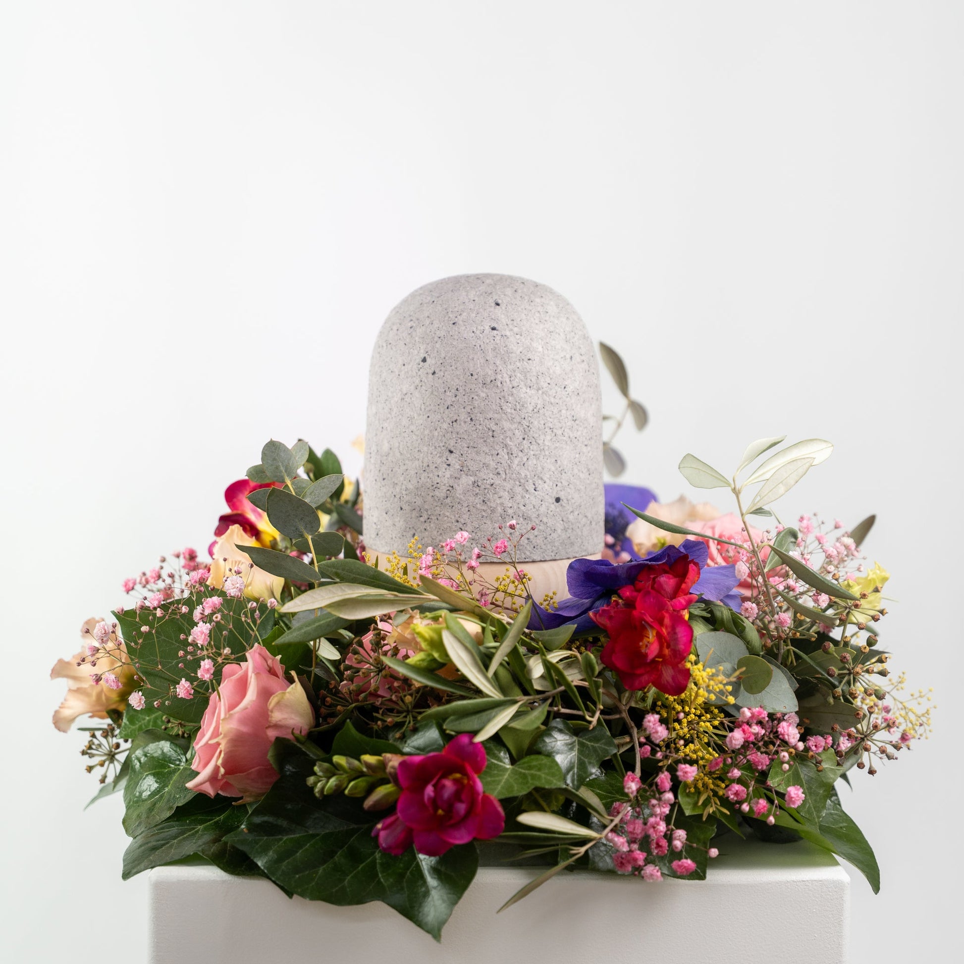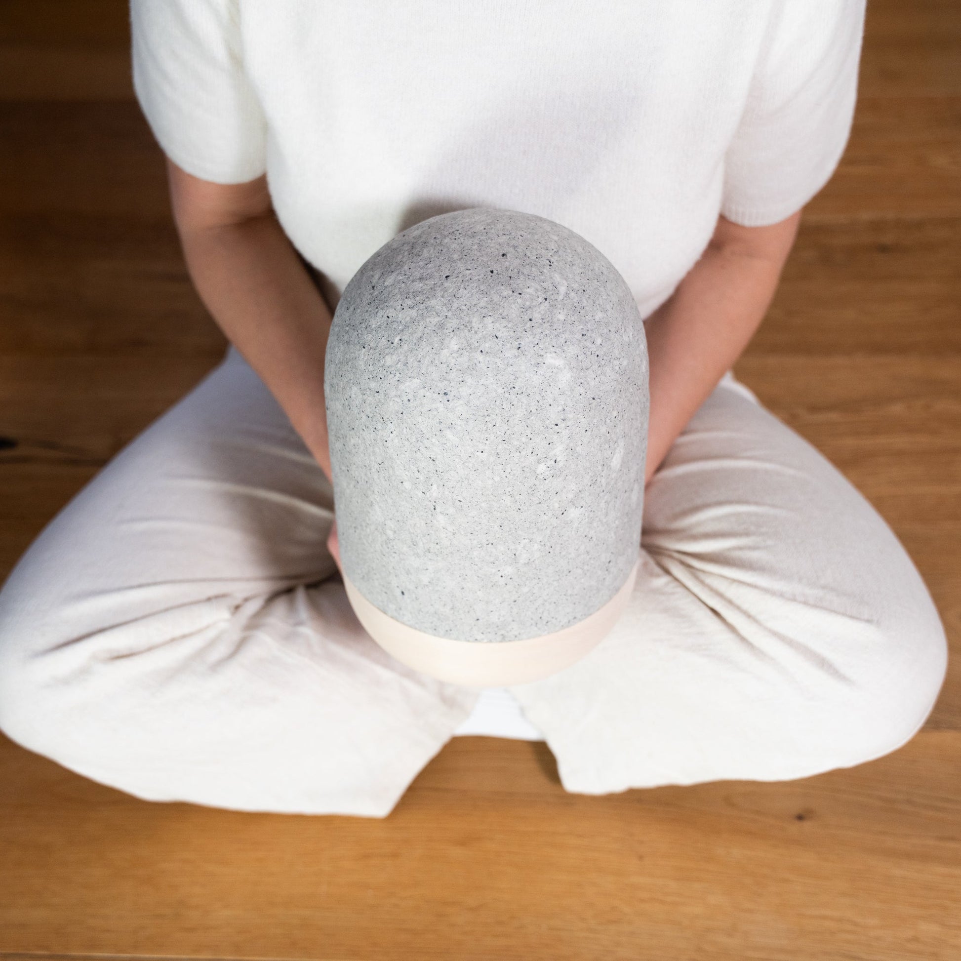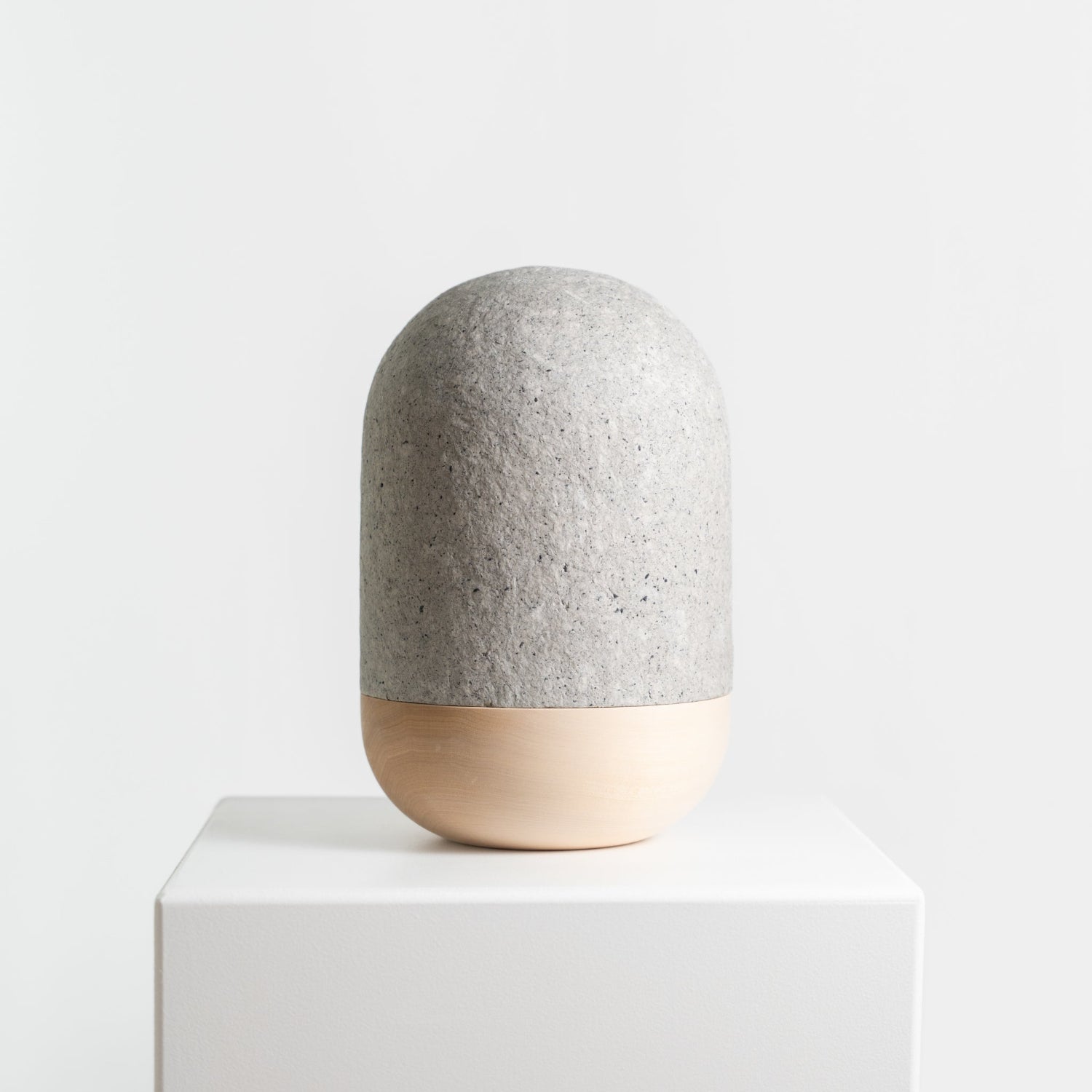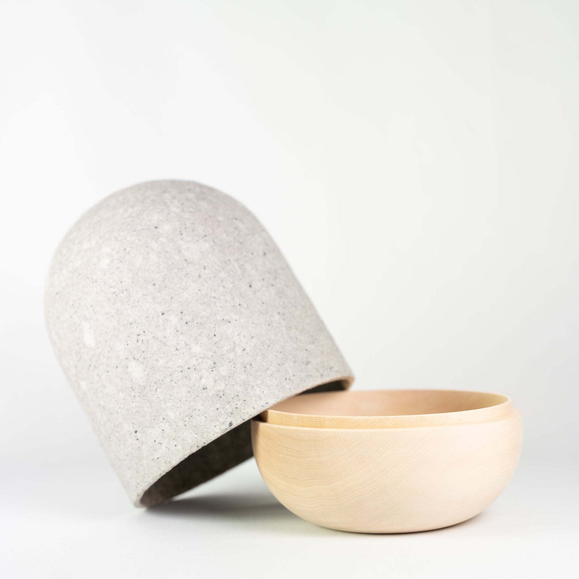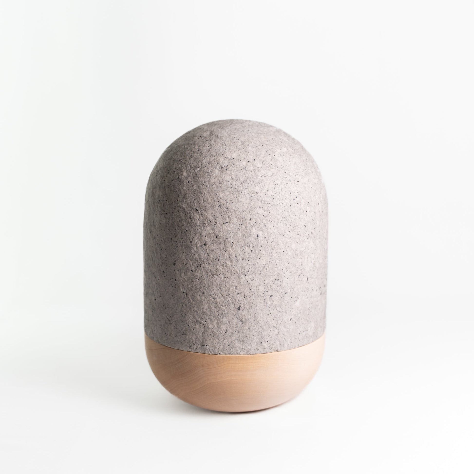 Die Urnenhaube ist aus Baumwollfasern mit Pigmenten aus Schiefer in sorgfältiger Handarbeit um einen Holzmodel modelliert. Die Schale der Urne ist aus unbehandeltem Lindenholz - die Ursprünglichkeit ihrer Materialien zeichnet diese Urne aus. Die Zugabe natürlicher Pigmente, in diesem Falle etwas Schiefer, macht jede Urne vollkommen einzigartig und gibt ihr einen ursprünglichen Charakter.